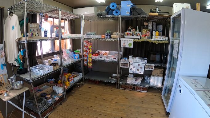 キャンプ用品から日用品まで揃っていて、電子レンジも使用可能になっています