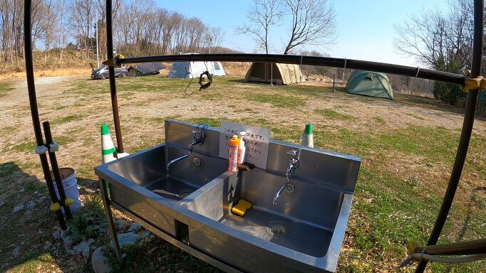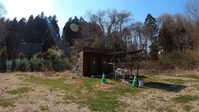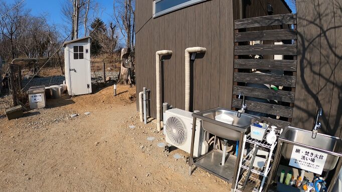 トイレ横に焚き火台の洗い場、灰捨て場もあります