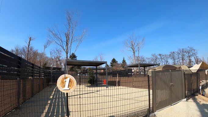 どちらも水道付きのサイトで、サイト内に「ペット用の柵」があります